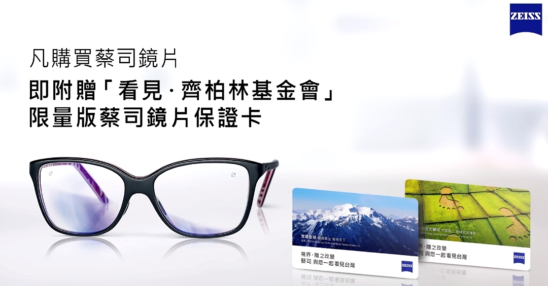 1月21日起,凡購買蔡司鏡片,立即捐贈部分銷售額給「看見.齊柏林基金會」,並贈送看見台灣紀念版蔡司鏡片保證卡。