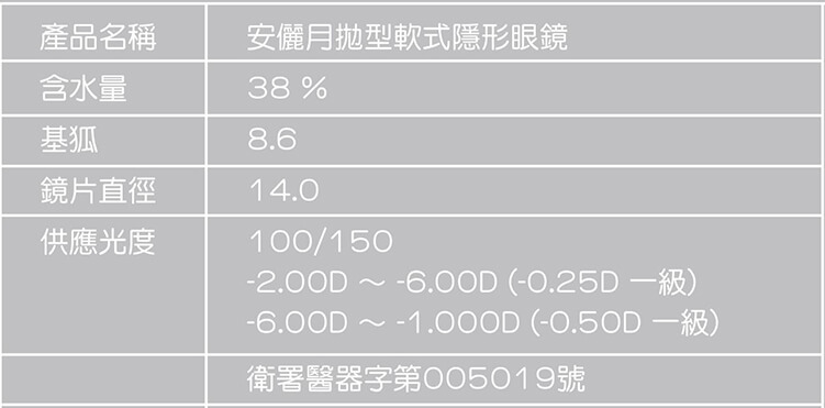 產品名稱 安儷日拋型軟式隱形眼鏡