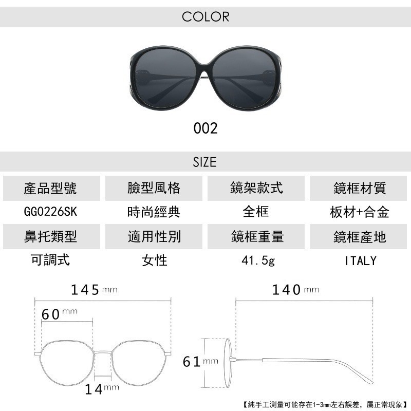 用途:女用太陽眼鏡
